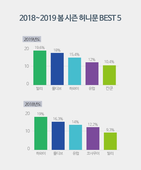 ¹ß¸®, 2019 º½ ½ÃÁð ½ÅÈ¥¿©Çà ¼±È£µµ 1À§¡¦¸ð°´ 19.6% ±â·Ï