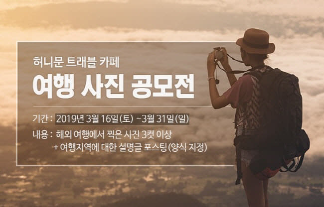Çã´Ï¹®¿©Çà»ç ÆÊÅõ¾î(´ëÇ¥ ±ÇÀÏÈ£)´Â 3¿ù »õº½À» ¸Â¾Æ °ø½ÄÄ«Æä Çã´Ï¹®Æ®·¡ºí¿¡¼ Áö³ Ä«ÆäȰµ¿¿Õ(3¿ù1ÀÏ~3¿ù15ÀÏ)¿¡ ÀÌ¾î µÎ ¹øÂ° À̺¥Æ®·Î ¿À´Â 31ÀϱîÁö ¿©Çà»çÁø °ø¸ðÀüÀ» ÁøÇàÇÑ´Ù°í ¹àÇû´Ù. Çã´Ï¹®Æ®·¡ºí Ä«Æä ȸ¿øÀ̸é 3¿ù µÎ ¹øÂ° À̺¥Æ®ÀÎ ¿©Çà»çÁø °ø¸ðÀü¿¡ Âü¿©¸¦ ÇÒ ¼ö ÀÖ´Ù. ÇØ¿Ü¿©Çà ÁßÀÇ Ãß¾ïÀ» ´ãÀº ´Ù¾çÇÑ »çÁøÀ» Ä«Æä¿¡ ³²±â¸é µÈ´Ù. Ä«Æä Çã´Ï¹®Æ®·¡ºí ¿©Çà»çÁø °ø¸ðÀü Âü¿©ÀÚ Áß 1µî¿¡°Ô´Â ¹éÈÁ¡»óǰ±Ç 10¸¸¿ø±ÇÀÌ, Âü°¡»ó(»óÀ§ 30¸í)À¸·Î´Â ½ºÅ¸¹÷½º Ä¿ÇÇ ±âÇÁÆ®ÄÜÀÌ Á¦°øµÈ´Ù
