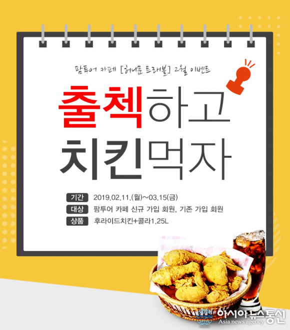 Çã´Ï¹®¿©Çà»ç ÆÊÅõ¾î´Â ¼³ ¿¬ÈÞ°¡ ³¡³ª°í º»°ÝÀûÀÎ 2019³â ½Å³âÀ» ¸Â¾Æ °ø½Ä Ä«ÆäÀÎ Çã´Ï¹®Æ®·¡ºí¿¡¼ 2¿ù Ã⼮üũ À̺¥Æ®¸¦ ÁøÇàÇÑ´Ù°í 13ÀÏ ¹àÇû´Ù. ¹Ì¼ÇÀ» ¼öÇàÇÏ´Â ¸ðµç ȸ¿øµé¿¡°Ô ÈĶóÀ̵å ġŲ ¼¼Æ®(1.25LÄݶó Æ÷ÇÔ)¸¦ Á¦°øÇÑ´Ù. ÆÊÅõ¾î °ø½Ä Ä«Æä Çã´Ï¹®Æ®·¡ºí À̺¥Æ® Âü¿©¸¦ ¿øÇÒ °æ¿ì ½Å±Ô ȸ¿ø °¡ÀÔÀ» ÇØ¼ ¿À´Â 3¿ù 15ÀϱîÁö Ä«Æä Ã⼮üũ¸¦ ¿¬¼Ó 10ȸ ¹× ´ñ±Û 30ȸ ÀÌ»ó ³²±â¸é µÈ´Ù. À̳ªÈñ ÆÊÅõ¾î È«º¸ÆÀ ÁÖÀÓÀº "ÆÊÅõ¾î °ø½Ä Ä«Æä Çã´Ï¹®Æ®·¡ºíÀ» ¹æ¹®ÇÏ¸é °áÈ¥À» ¾ÕµÐ ¿¹ºñ ½ÅÈ¥ºÎºÎµé ´ë»óÀ¸