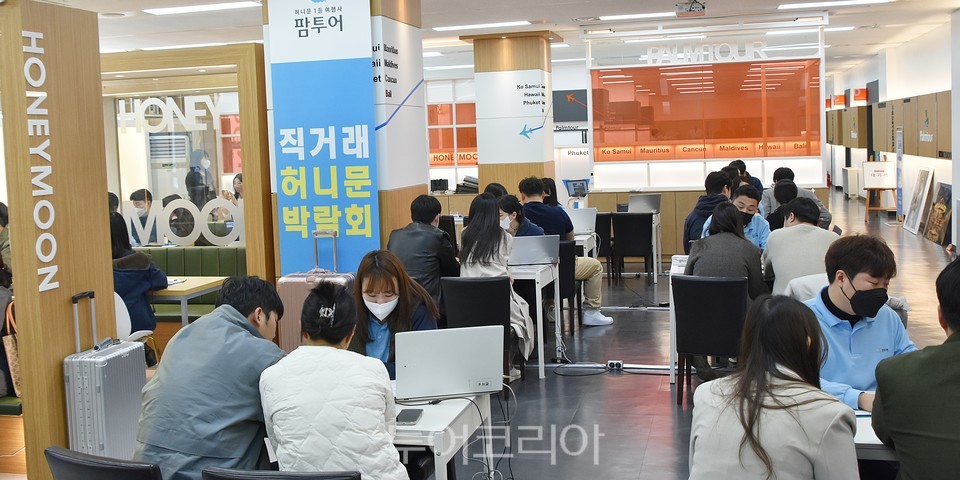 - Ưº°ÇÑ ÁÖ¸» Á÷°Å·¡ ½ÅÈ¥¿©Çà¹Ú¶÷ȸ ... 4¿ù1ÀÏ~2ÀÏ ´Ü ÀÌÆ²°£ °³ÃÖ ¿ÃÇØ ⸳21ÁÖ³âÀ» ¸ÂÀÌÇÑ Çã´Ï¹®¿©Çà»ç ÆÊÅõ¾î(´ëÇ¥ÀÌ»ç ±ÇÀÏÈ£)ÀÇ ÁÖ¸» ½ÅÈ¥¿©Çà¹Ú¶÷ȸ 2023³â¿¡µµ º¯ÇÔ¾øÀÌ ¸ÅÁÖ ÁÖ¸» ÀÌÆ²°£ º»»ç°¡ À§Ä¡ÇÑ ¼¿ï °³²°ú Á÷¿µÁ¡ ÆÊÅõ¾î´ëÀü ¹× ÆÊÅõ¾îºÎ»ê¿¡¼ ¿¸®¸é¼ °áÈ¥À» ¾ÕµÐ ¿¹ºñ ½ÅÈ¥ºÎºÎµéÀÇ È£ÆòÀ» ¾ò°í ÀÖ´Â °ÍÀ¸·Î ³ªÅ¸³µ´Ù. ÆÊÅõ¾î¿¡ µû¸£¸é ÁÖ¸» ½ÅÈ¥¿©Çà¹Ú¶÷ȸ ÇöÀå(º»»ç ±âÁØ) ÁÖ¸» ÀÌÆ² Æò±Õ 400¿© Ä¿ÇÃÀÌ ¹æ¹®ÇØ ÇØ¿Ü ½ÅÈ¥¿©Çà »ó´ãÀ» ½Ã°£º° »çÀü¿¹¾àÁ¦·Î ÀÌ·ïÁö°í ÀÖ´Ù. ƯÈ÷ ÆÊÅõ¾î ÁÖ¸» ¹Ú¶÷ȸ¿¡¼´Â ½ÅÈ¥¿©Çà