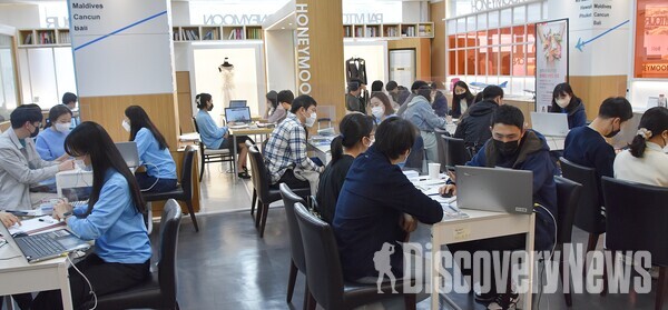 9~10ÀÏ ¹Ú¶÷ȸµµ »çÀü¿¹¾àÀοø Áß 80% ÀÌ¹Ì ¿¹¾à¿Ï·á Çã´Ï¹®¿©Çà»ç ÆÊÅõ¾î(´ëÇ¥ÀÌ»ç ±ÇÀÏÈ£)ÀÇ ÁÖ¸» ½ÅÈ¥¿©Çà¹Ú¶÷ȸ ¹æ¹®°í°´µéÀÌ ÀλêÀÎÇØ¸¦ ÀÌ·ç¸ç 3¿ù 3Â÷·Ê(3¿ù12ÀÏ~13ÀÏ, 19ÀÏ~20ÀÏ, 26ÀÏ~27ÀÏ)¿Í 4¿ù ù ¹Ú¶÷ȸ(4¿ù2ÀÏ~3ÀÏ) ¸ðµÎ ÀÌÆ² µ¿¾È Æò±Õ 400¿© Ä¿ÇÃÀÌ ¹æ¹®ÇØ ¸¸¿ø»ç·Ê¸¦ ±â·ÏÇß´Ù. ¶ÇÇÑ ¿À´Â 9Àϰú 10ÀÏ ¿¸®´Â ÆÊÅõ¾î ÁÖ¸» ½ÅÈ¥¿©Çà¹Ú¶÷ȸÀÇ °æ¿ì¿¡µµ »çÀü¿¹¾à Àοø 400¸í Áß ¾à 80%°¡ ÀÌ¹Ì ½ÅûÇÑ »óȲÀÌ´Ù. ÆÊÅõ¾î ±ÇÀÏÈ£ ´ëÇ¥ÀÌ»ç´Â “Áö³´Þ 21ÀÏ ÀÚ°¡°Ý¸® ¸éÁ¦ Á¶Ä¡½ÃÇà°ú ´õºÒ¾î ±×µ¿¾È
