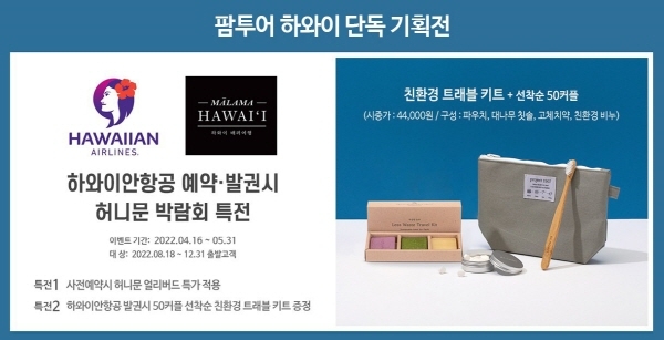 ÇÏ¿ÍÀ̾ÈÇ×°ø ¿¹¾à·¹ß±Ç ½Ã ƯÀü Á¦°ø ÇÏ¿ÍÀÌ °¡¼ººñ·¸¸Á·µµ ÀÎ±â¼øÀ§ È£ÅÚ 8¼± °ø°³ ÇÏ¿ÍÀÌ ¾ó¸®¹öµå Ư°¡ 50Ä¿Çà ¼±Âø¼ø Æ®·¡ºíŰƮ ÁõÁ¤ Çã´Ï¹®¿©Çà»ç ÆÊÅõ¾î(´ëÇ¥ÀÌ»ç ±ÇÀÏÈ£)´Â ÇÏ¿ÍÀ̴ܵ¶ ±âȹÀüÀÇ ÀÏȯÀ¸·Î ¿À´Â 5¿ù 31ÀϱîÁö ÁÖ¸» ½ÅÈ¥¿©Çà¹Ú¶÷ȸ ÇöÀå¿¡¼ ÇÏ¿ÍÀ̾ÈÇ×°ø ¿¹¾à·¹ß±Ç ½Ã ¾ó¸®¹öµå Ư°¡Àû¿ë ¹× 50Ä¿Çà ¼±Âø¼ø ģȯ°æ Æ®·¡ºíŰƮ ÁõÁ¤ À̺¥Æ®¸¦ ÁøÇàÇÑ´Ù°í 14ÀÏ ¹àÇû´Ù. ƯÈ÷ ÆÊÅõ¾î´Â ÇÏ¿ÍÀÌ ½ÅÈ¥¿©Çà °¡¼ººñ ¸¸Á·µµ ÀÎ±â¼øÀ§ È£ÅÚ 8¼±(ÇÁ¸°½º¿ÍÀÌŰŰ, ºñÄ¡ÄÞº¸¹ÙÀ̾ƿô¸®°Å, ÇÒ·¹Çª³ª¹Ù