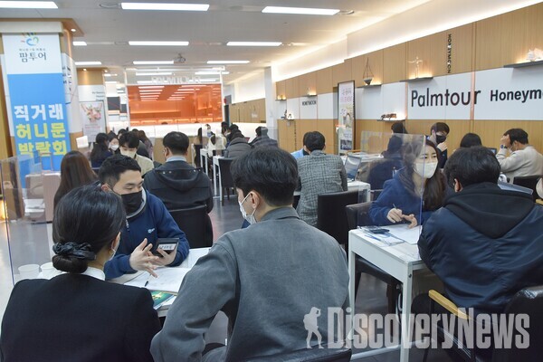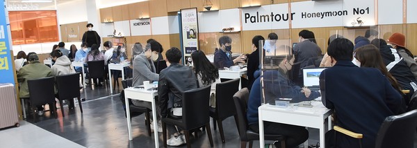 - ⸳20ÁÖ³â ¸í¼º°ú Äڷγª±â°£ 2³â Á¤»ó¿µ¾÷ °í¼ö ¹× ²ÙÁØÇÑ ¹Ú¶÷ȸ °³ÃÖ Çã´Ï¹®¿©Çà»ç ÆÊÅõ¾î(´ëÇ¥ÀÌ»ç ±ÇÀÏÈ£)ÀÇ ¸ÅÁÖ ÁÖ¸» ÀÌÆ² µ¿¾È ¿¸®´Â ½ÅÈ¥¿©Çà¹Ú¶÷ȸ ÇöÀå¿¡ Æò±Õ 400¿© Ä¿ÇÃÀÇ ¿¹ºñ ½ÅÈ¥ºÎºÎµéÀÇ ¹æ¹®Çà·ÄÀÌ À̾îÁö¸ç º»°ÝÀûÀÎ ÇØ¿Ü ½ÅÈ¥¿©ÇàÀÇ Ã»½ÅÈ£·Î ÀÛ¿ëµÉ Á¶ÁüÀÌ´Ù. ½ÇÁ¦ µÎ Â÷·Ê(3¿ù12ÀÏ~13ÀÏ. 3¿ù19ÀÏ~20ÀÏ) ÆÊÅõ¾î ½ÅÈ¥¿©Çà¹Ú¶÷ȸ¿¡´Â Á¾Àü(2¿ù ´ëºñ) µÎ ¹è¸¦ Èǽ ¶Ù¾î³Ñ¾î ¼±Âø¼øÀ¸·Î 400¿© Ä¿Çà ¹æ¹®½Åû¸¸ ¹Þ°í Àִµ¥ ÀÏÁÖÀÏÀü¿¡ ¸¶°¨µÉ Á¤µµ·Î Æø¹ßÀûÀÎ ½ÅÈ¥¿©Çà »ó´ã½ÅûÀÌ ¼âµµ¸¦ ÇØ¼ Â÷ÁÖ ¹Ú¶÷ȸ³ª ÆòÀÏ »ó´ã