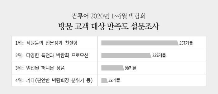 Çã´Ï¹®¿©Çà»ç ÆÊÅõ¾î(´ëÇ¥ÀÌ»ç ±ÇÀÏÈ£)°¡ Áö³ 1¿ùºÎÅÍ 4¿ù±îÁö 4°³¿ù µ¿¾È ÀÚ»ç Çã´Ï¹®¹Ú¶÷ȸ¸¦ ¹æ¹®ÇÑ ¿¹ºñ ½ÅÈ¥ºÎºÎµéÀ» ´ë»óÀ¸·Î ¼³¹®Á¶»ç¸¦ ÇÑ °á°ú¸¦ 8ÀÏ ¹ßÇ¥Çß´Ù. ÀÌ Áß 357Ä¿ÇÃÀÌ Àü¹®ÀûÀÎ »ó´ã·Â¿¡ ¹ÏÀ½°ú ½Å·Ú°¡ °£´Ù°í ´äÀ» Çß°í µÚÀÌ¾î ¹Ú¶÷ȸÀÇ ´Ù¾çÇÑ Æ¯Àü°ú ÇÁ·Î¸ð¼Ç(239Ä¿ÇÃ)À» ³ôÀÌ »ê °ÍÀ¸·Î ³ªÅ¸³µ´Ù. ƯÈ÷ ÆÊÅõ¾î ¹Ú¶÷ȸ °í°´µéÀÌ ¼±Á¤ÇÑ ¸¸Á·µµ ¼øÀ§¿¡¼ °¢ Áö¿ªº° Çã´Ï¹® Àü¹® ÄÁ¼³ÅÏÆ® Áï Á÷¿øµéÀÇ »ó´ã·Â°ú Ä£ÀýÇÔÀÌ °¡Àå ³ô°Ô ³ªÅ¸³ª Á÷¿øµéÀÇ ¿ì¼öÇÑ »ó´ãÀÌ °í°´µé¿¡°Ô ¾îÇÊÇÑ °ÍÀ¸·Î ºÐ¼®µÈ´Ù. ±Ç